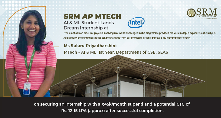 The MTech programmes offered by different departments of the School of Engineering and Sciences are designed in keeping industry trends and requirements. SRM-AP’s international collaborations with University of Wisconsin, Madison, Illinois Institute of Technology, North-Eastern University, Flinders University, Australia offer students global platforms to pursue their interests. They can choose from a wide range of electives and build a niche in their area of interest. It prepares them for higher studies or high profile careers around the world.