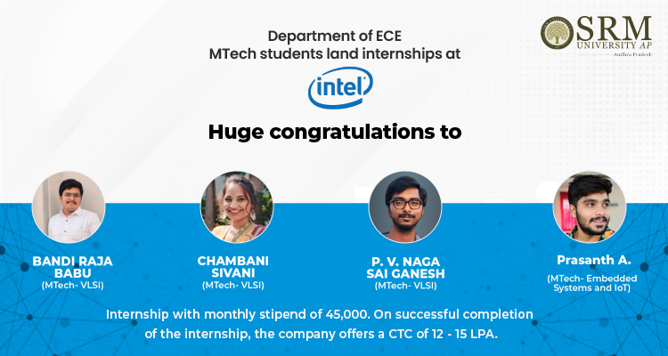 SRM University-AP prides itself on its dynamic and effective placement cell, which is dedicated to ensuring the bright futures of our students and anchoring their dream careers after M.Tech. With a multifaceted, strategic approach, we bridge the gap between academia and industry by facilitating impactful connections between our graduates and esteemed employers/organisations.