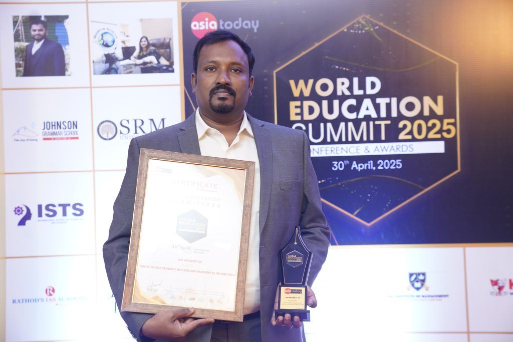 SRM University-AP, Amaravati has been conferred with the prestigious title of “One of the Best Universities with Excellent Placement of the Year – India” at the World Education Summit 2025, hosted by Asia Today Media. The accolade comes as a recognition of the university’s outstanding placement performance in the academic year 2023–24. The university boasts a network of over 850 recruitment partners, including industry leaders like Amazon, PayPal, Microsoft, Deloitte, Barclays, Oracle, and J.P. Morgan. Adding to its global footprint, 65 students received international offers from countries such as Australia, Canada, Japan, Sweden, and the USA.