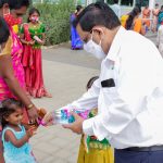 As part of the service activities to mark Founder’s Day, the NSS Department distributed masks and sanitisers for two days. Former DGP Dr Malakondayya formally started the distribution of the masks on August 24, Tuesday morning, and the university staff continued it to Wednesday as well. The university NSS coordinator Dr Lakshmana Rao and program officer Dr Parthasarathy informed that masks and sanitisers were handed over to cart traders, auto drivers, workers and to the elders at the Krishna Chaitanya Ashram in Mangalagiri town. Precautions to be taken to prevent corona infection were explained to the agricultural labourers in Kuragallu, Nirukonda and Nidamarru villages. Ms Revathi Balakrishnan, Mr Narendra Babu and several NSS volunteers participated in these activities.