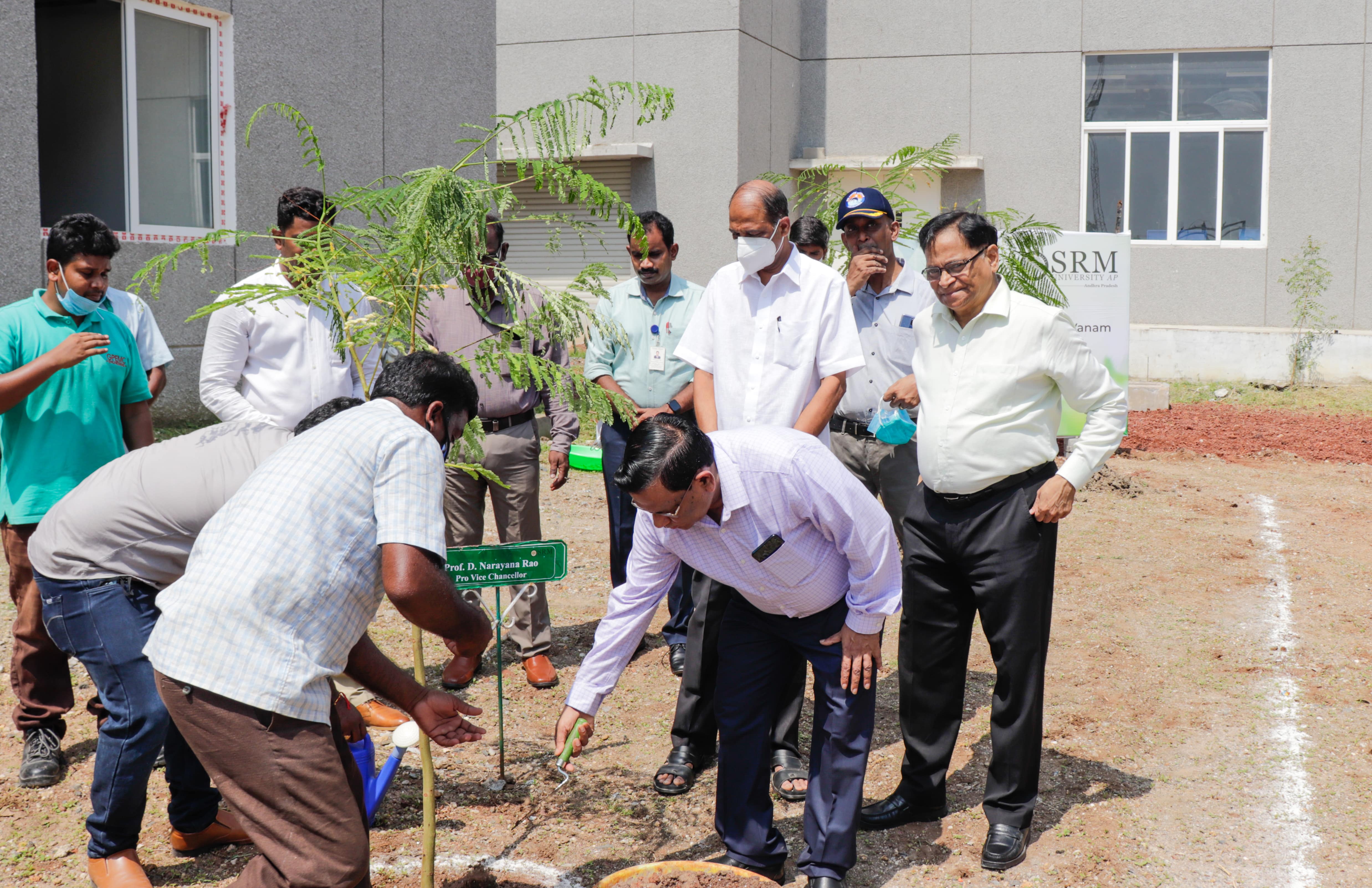 In his address, Vice-Chancellor Prof V S Rao commended the services rendered by Dr T R Paarivendhar for the progress of the education sector. He advised the students to move forward by taking inspiration from the Chancellor. In his keynote address, Dr M Malakondaiah praised the management for establishing a university with world-class standards in a very short period of time and providing first-class engineering education. He also appreciated the Prerana Vanam endeavour that aims to promote greenery on the campus. “We all have a responsibility to protect and nourish the environment and I am glad that SRM AP is showing the appropriate way”, he added. Speaking on the occasion, Pro-Vice-Chancellor, Prof D Narayana Rao paid tributes to the leadership of Hon’ble Chancellor. He further explicated the benefits of growing trees and how that sustainably contributes to the oxygen level in the atmosphere.