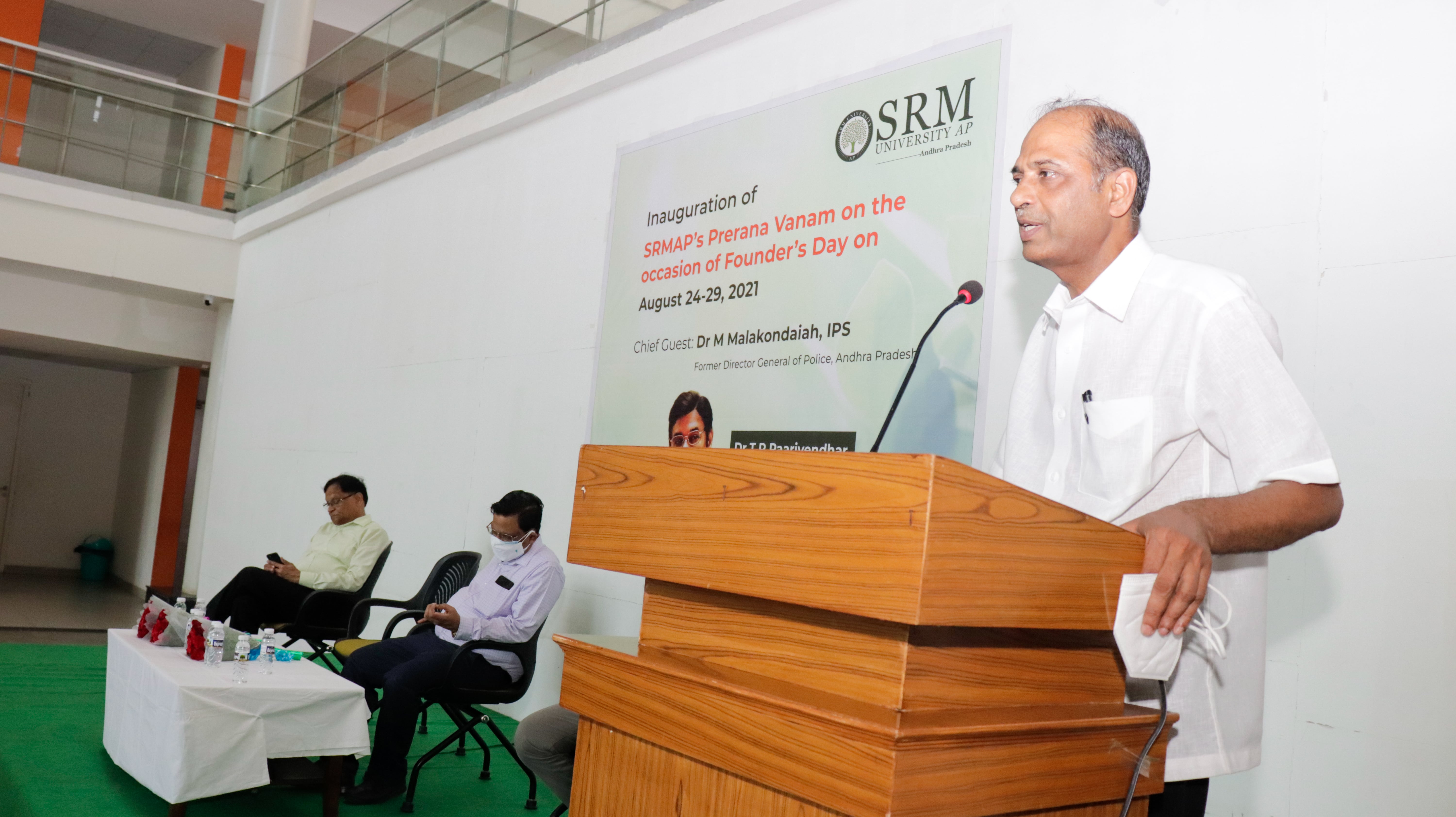 SRM University-AP celebrated the birthday of Founder Chancellor Dr T R Paarivendhar as Founder’s Day on August 24, 2021. Dr M Malakondaiah IPS, former Director-General of Police, Andhra Pradesh, was the chief guest of the day. The inauguration of Prerana Vanam, a week-long (Aug 24-29) event of planting trees across the university is being held as part of the celebrations. Prof V S Rao, Vice-Chancellor; Prof D Narayana Rao, Pro-Vice-Chancellor; Dr Vinayak Kalluri, Registrar; and Wg Cmdr Venkataachalam Sekkappan, Director-CLM addressed the gathering.