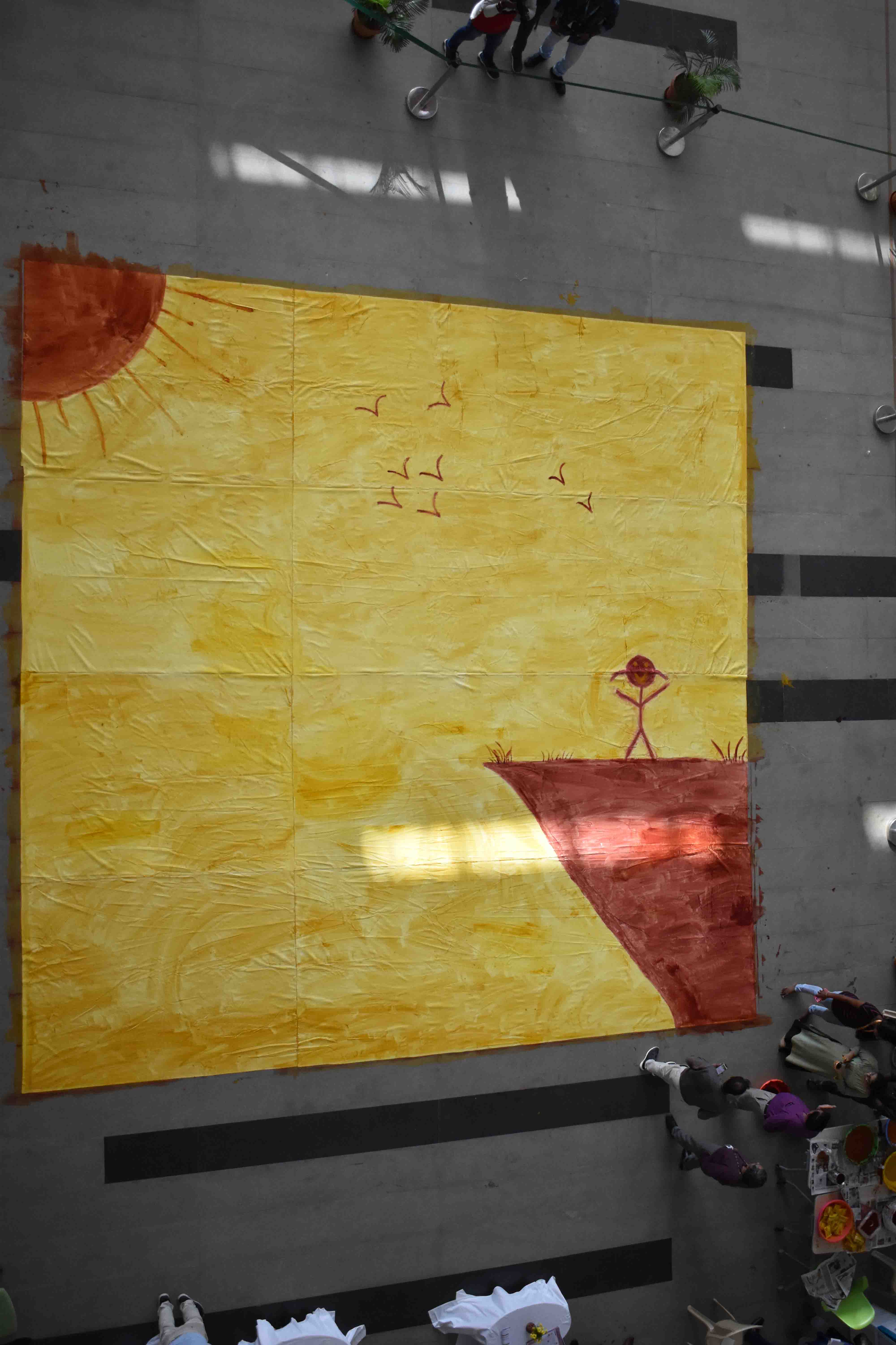 Sreya started the painting of a little girl standing on a cliff and absorbing in the beauty of the rising sun, at 11.30 a.m. and concluded the act exactly at 3.45 p.m. “The painting is about a girl rejoicing freedom mimicking my emotion after I was done with my stressful high school days. While dealing with the pressure at school, I wanted to prove that zeal and passion can steer one to achieve monumental achievements. “, explains Sreya.