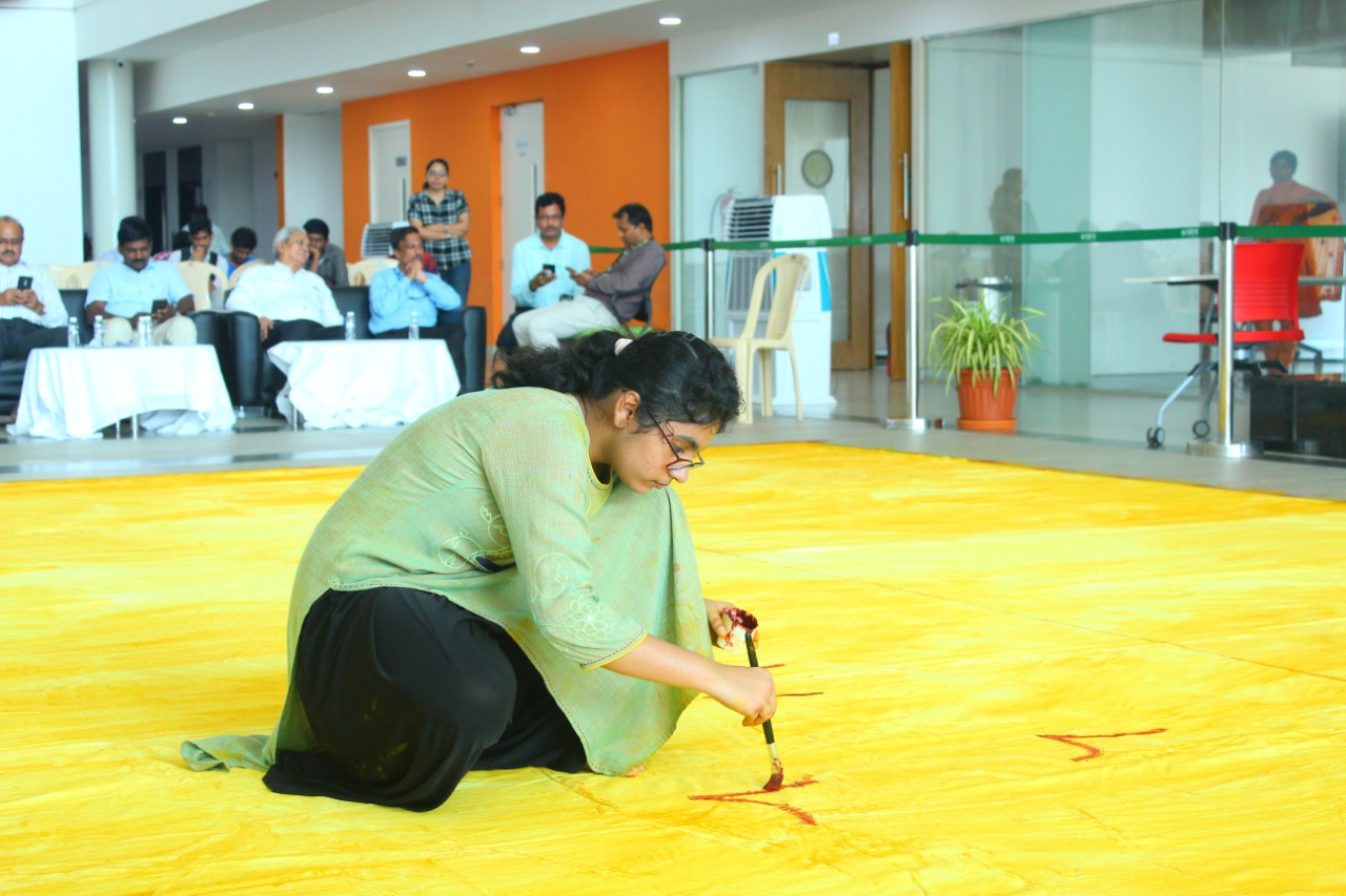 Life-size painting using spicesCoinciding with the valedictory session of a two-day Tech Fest hosted by the university’s management at the campus, Sreya attracted eyeballs by painting on a 588 square feet canvas in a span of 4 hours and 15 minutes using spices (turmeric powder and vermilion). The feat was recorded in the presence of a panel of jury to claim a place for Sreya in the Guinness Book of World Records. On Wednesday, her painting reached the pinnacle when the Guinness World Records Committee sent an e-mail to the university ownership announcing that the title has been awarded to Sreya. The Cherian Committee has broadcasted that the World Records will be awarded in recognition of the wellbeing of the student. The World Record title certificate will be issued soon.