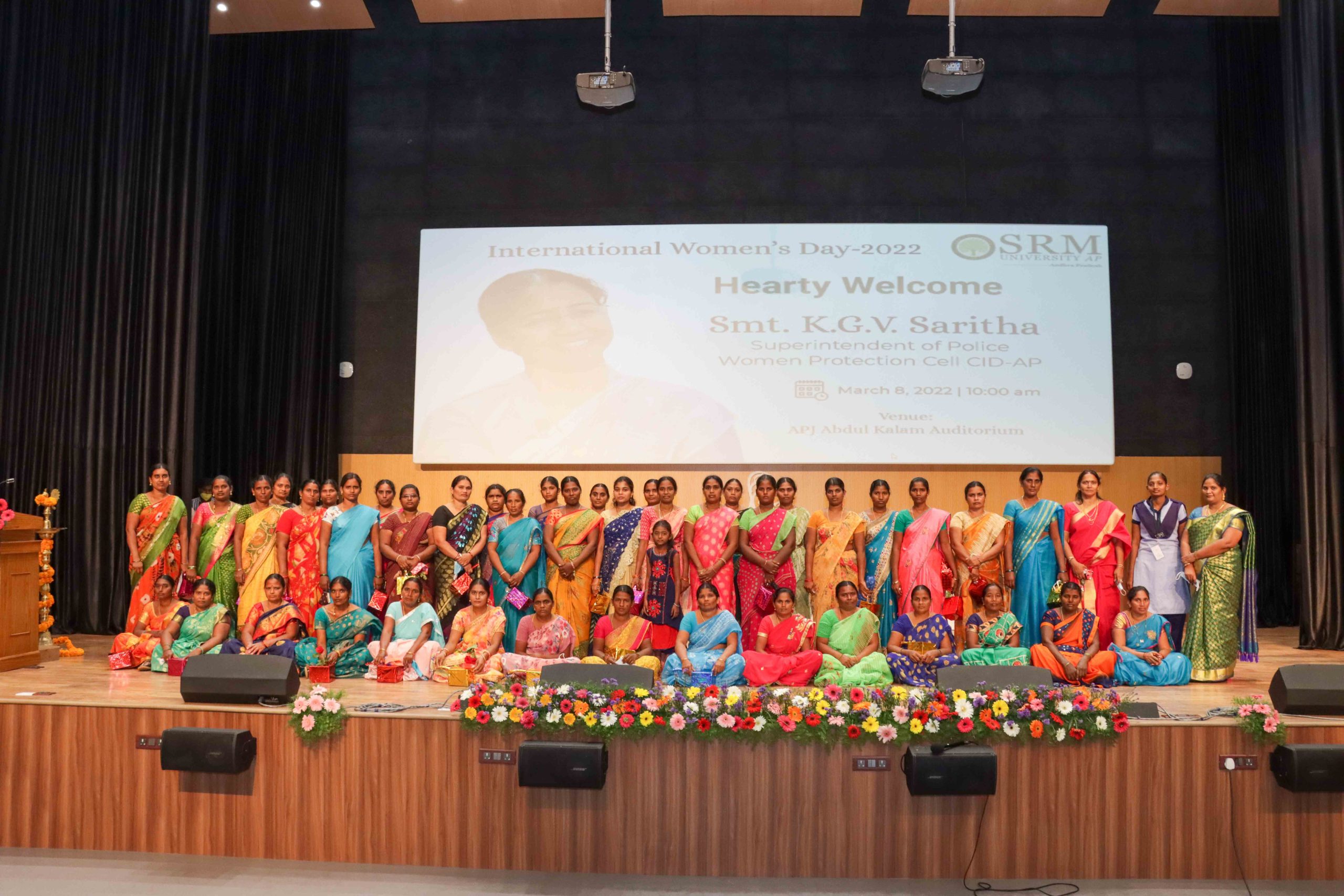 Every International Women’s Day is a new opportunity to render new definitions to womanhood. It calls the attention of the world to take a moment and marvel at the unimaginable, women across the globe have made possible. It is indeed incredible what the womenfolk has been contributing to the world amidst a thousand adverse circumstances. SRM University-AP proudly celebrated this women’s day by marking respect to women across different walks of life for the enormous grit and endurance they have put on. Smt KGV Saritha, Superintendent of Police, Women Protection Cell, CID-AP was the distinguished guest of the day. Her valuable presence and enriching experience added much essence to the day and made the celebrations more meaningful.