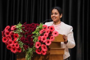 Despite the prevalence of social evils like Child marriage and Sati, women in India like Savitribai Phule have stewarded various socio-religious movements to transform the patriarchal face of the Indian milieu. She went on to cite examples of Sindhuthai Sapkal, the great Indian social worker and Manasi Joshi, the Indian para-badminton player who have displayed the mettle of Indian womanhood by transforming their weaknesses into the greatest of their strengths. She called out to all the women to awaken their innate strength and break the biases they carry within. Revealing the mantra “Love Yourself, Respect Yourself, and Look at yourself with your own eyes”, she alerted all the women to pay attention to their physical fitness, mental agility, and emotional balance.