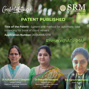 In a significant advancement for cloud computing technologies, Dr Kakumani K C Deepthi and Dr Prasanthi Boyapati, Assistant Professors in the Department of Computer Science and Engineering, alongside B Tech student Ms Yarra Khyathisree, have successfully filed and published a patent titled “SYSTEM AND METHOD FOR AUTOMATIC LOAD BALANCING FOR BANK OF CLOUD SERVERS.” The patent, registered with Application Number 202441057273, was officially published in the Patent Office Journal.