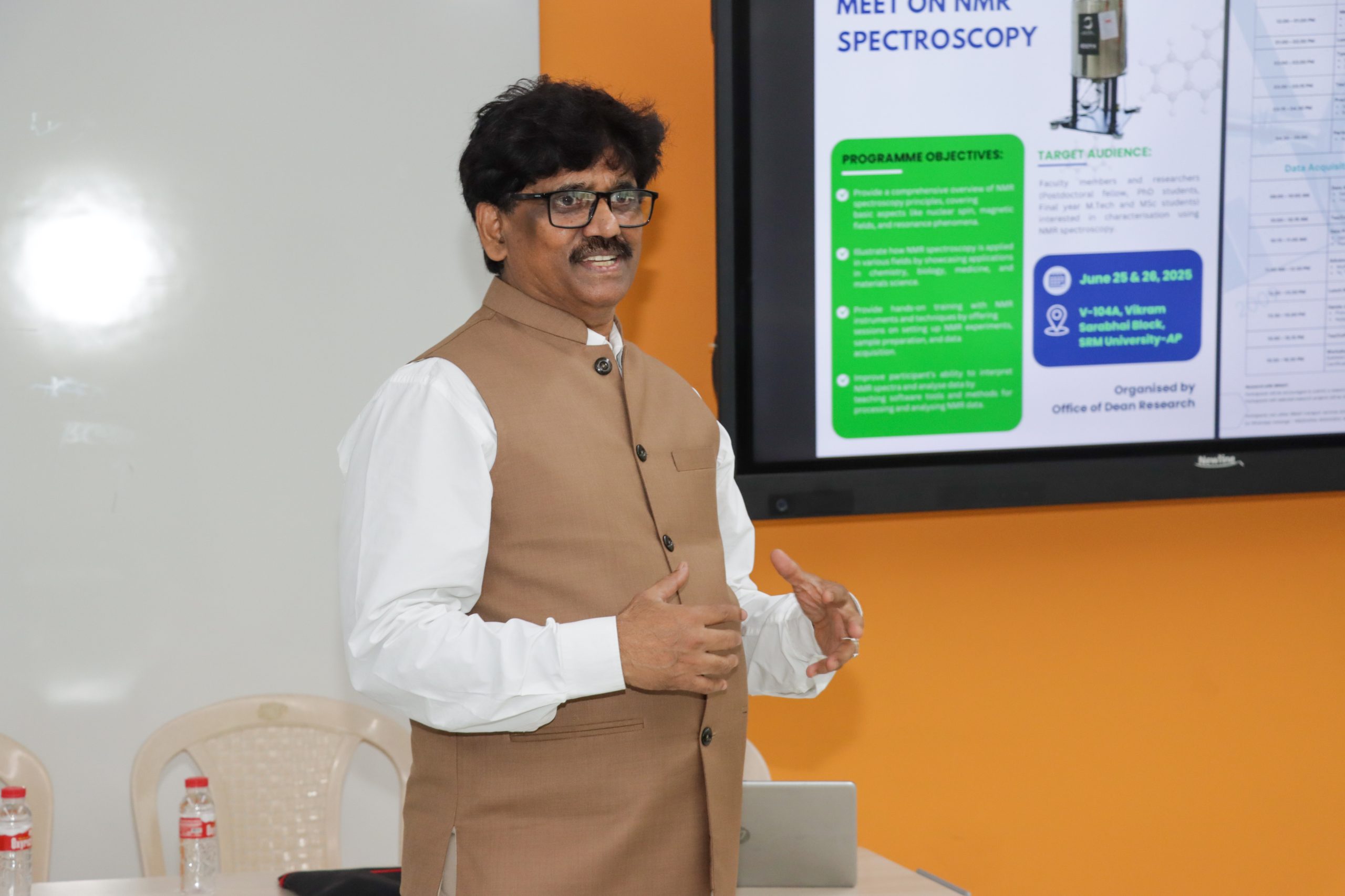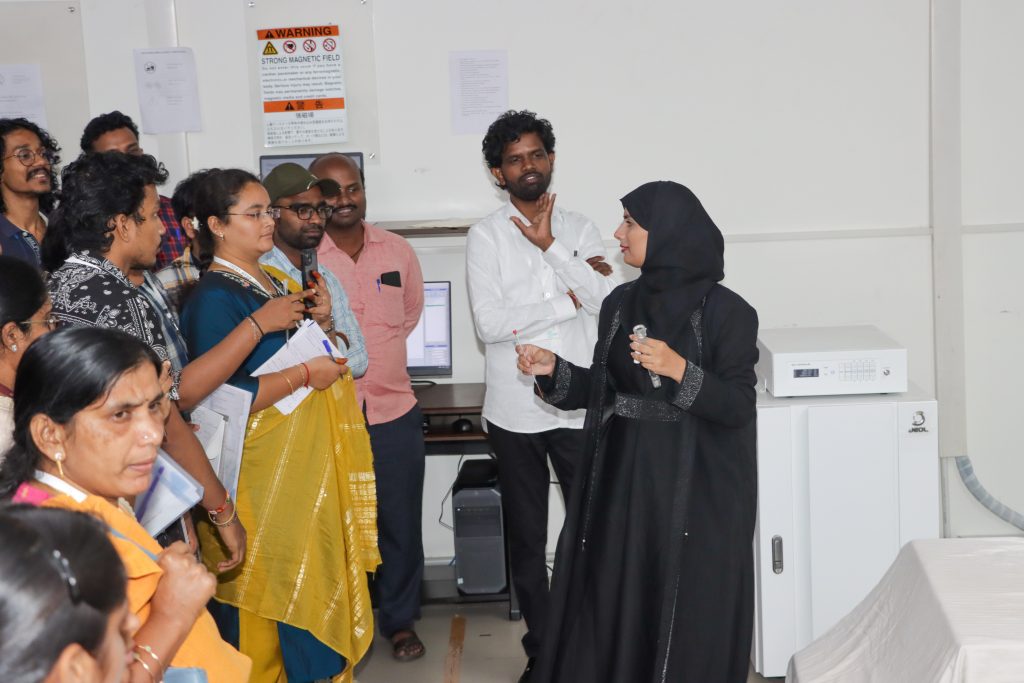 The workshop held multiple sessions, including theoretical sessions, practical sessions, and interactive sessions. In the theoretical session, Dr Ramaraju Korivi explained the principles of NMR Spectroscopy. he also covered an instrumentation overview and data interpretation techniques. The session was further enriched by Mr Sakthi Ganapathi R, a PhD scholar. The interactive session saw Mr Arun Kumar Bandarapu enhancing the understanding of advanced characterisation techniques beyond NMR, including SEM, XPS, TEM, EPR, and more. The hands-on session was meticulously coordinated by Ms. Afreen Shaik, Dr. Ramaraju Korivi, and Mr. Sakthi Ganapathi R, providing participants with immersive, real-time exposure to the operational aspects of NMR spectroscopy
