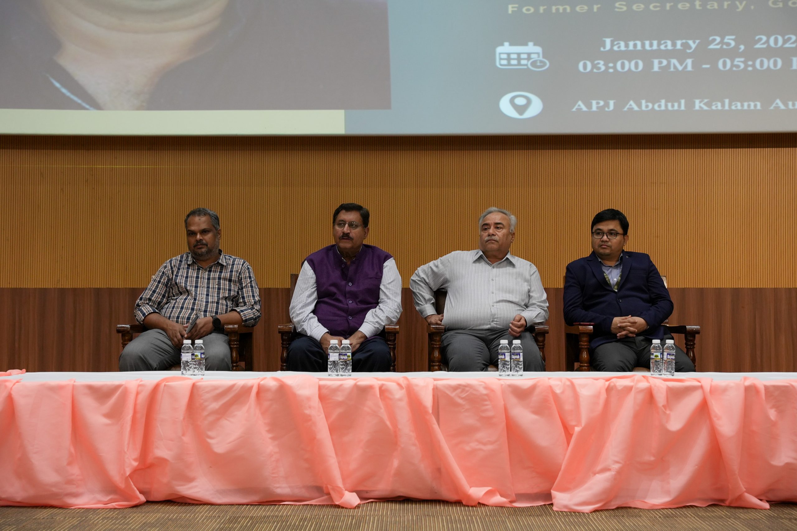 SRM University-AP proudly hosted the seventeenth edition of the University Distinguished Lecture series on the topic “Scientific Progress to Grand Progression: Opportunities and Challenges in Science-to-Technology-to-Market Paradigms.” The event took place on January 25, 2024, and featured an enlightening address by Dr Girish Sahni, Former Director General of CSIR and Former Secretary of the Government of India.