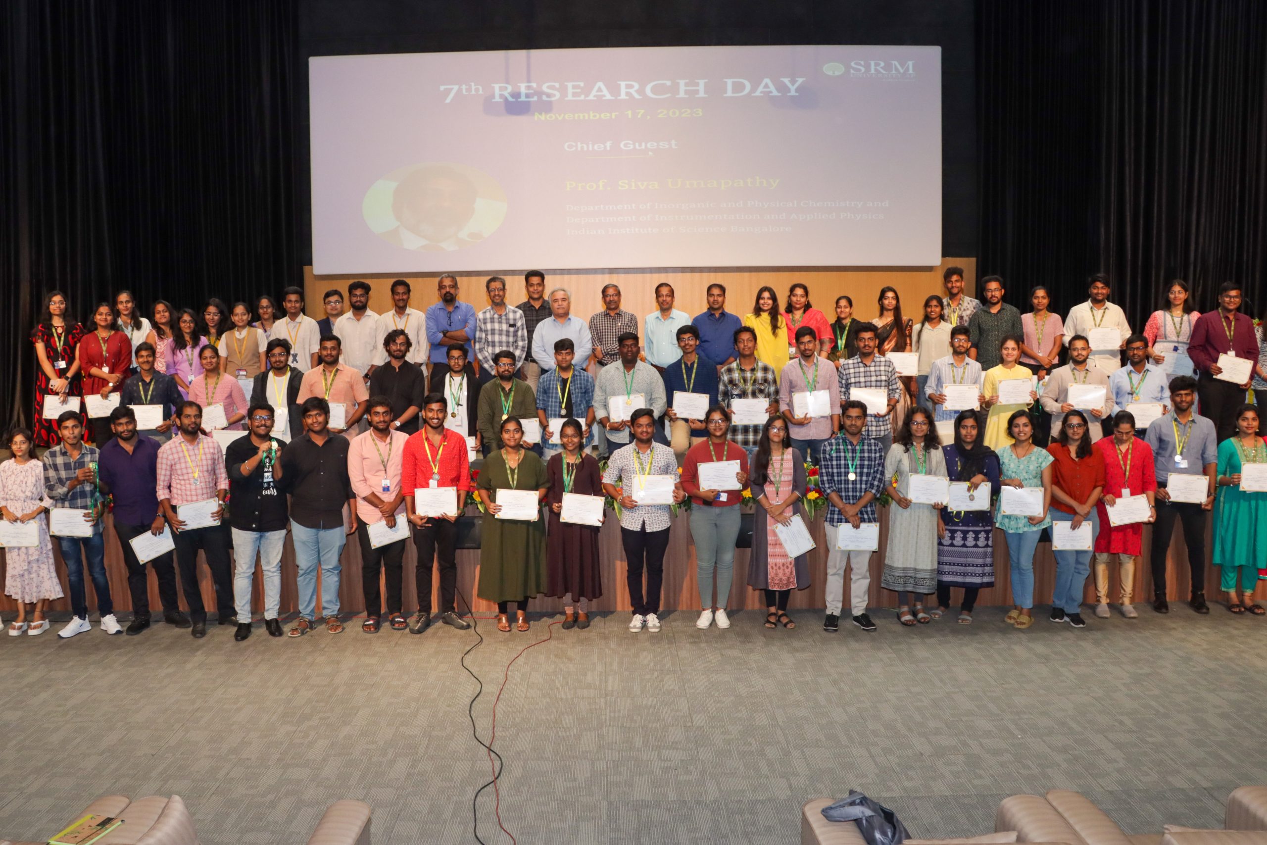 “Motivating young potential minds to pursue research and nurture a scientific career defines the true meaning of research”, said Prof. Siva Umapathy, Senior Professor at the Department of Inorganic and Physical Chemistry, Indian Institute of Sciences, Bengaluru, in his distinguished speech as the chief guest for Research Day at SRM University-AP.