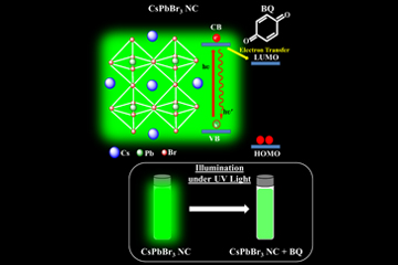 Inorganic lead halide perovskite nanocrystals (PNCs) are used in photocatalytic reactions in the modern era. The surface chemistry of the PNCs can play an important role in the excited state interactions and efficient charge transfer with redox molecules. In this work, Dr Mishra’s research group explored the impact of CsPbBr3 nanocrystal surface modification on the excited state interactions with the electron acceptor benzoquinone (BQ) for three different ligand environments: as oleic acid/oleylamine (OA/OAm), oleic acid (OA)/ trioctylphosphine (TOP), and oleic acid (OA)/ oleylamine (OAm)/ trioctylphosphine (TOP) ligands.
