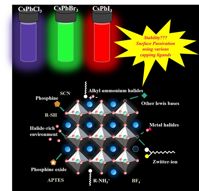 Cesium lead halide (CsPbX 3) perovskite nanocrystals (NCs) is emerging as an intriguing subject for the optoelectronics for its excellent optical properties and exceptional colour tunability. However, applicability of the materials become a major challenge due to their degenerative property. Consequently, researchers focus on developing various approaches to enhance the photoluminescence properties and stability of CsPbX 3 perovskite NCs. In the paper, Dr Mishras’s group reviews some of the promising approaches such as post‐synthetic modification, ligand exchange, and insitu addition.