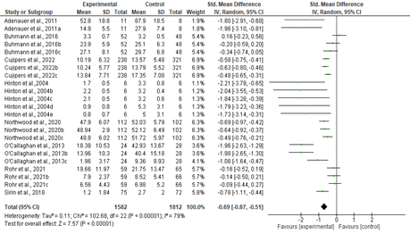 War and displacement have led to a global mental health crisis, with 117.3 million individuals displaced and one in five refugees experiencing psychological distress. Despite the availability of psychological interventions, their overall effectiveness remains unclear. This systematic review and meta-analysis evaluate the impact of psychological interventions on war refugees’ mental health. A comprehensive search of PubMed, Web of Science, APA PsycNET, ScienceDirect, and Google Scholar (July 2024) identified 21 studies for systematic review and eight randomized controlled trials for meta-analysis. The results indicate a significant medium effect size of psychological interventions (SMD = -0.69, 95% CI: -0.87, -0.51, p < .00001), with in-person interventions showing a large effect (SMD = -1.03) and telehealth interventions demonstrating a small effect (SMD = -0.44) in reducing the mental health issues among war refugees. Findings support the effectiveness of psychological interventions, emphasizing the need for further research on digital mental health solutions to enhance accessibility for war refugees.