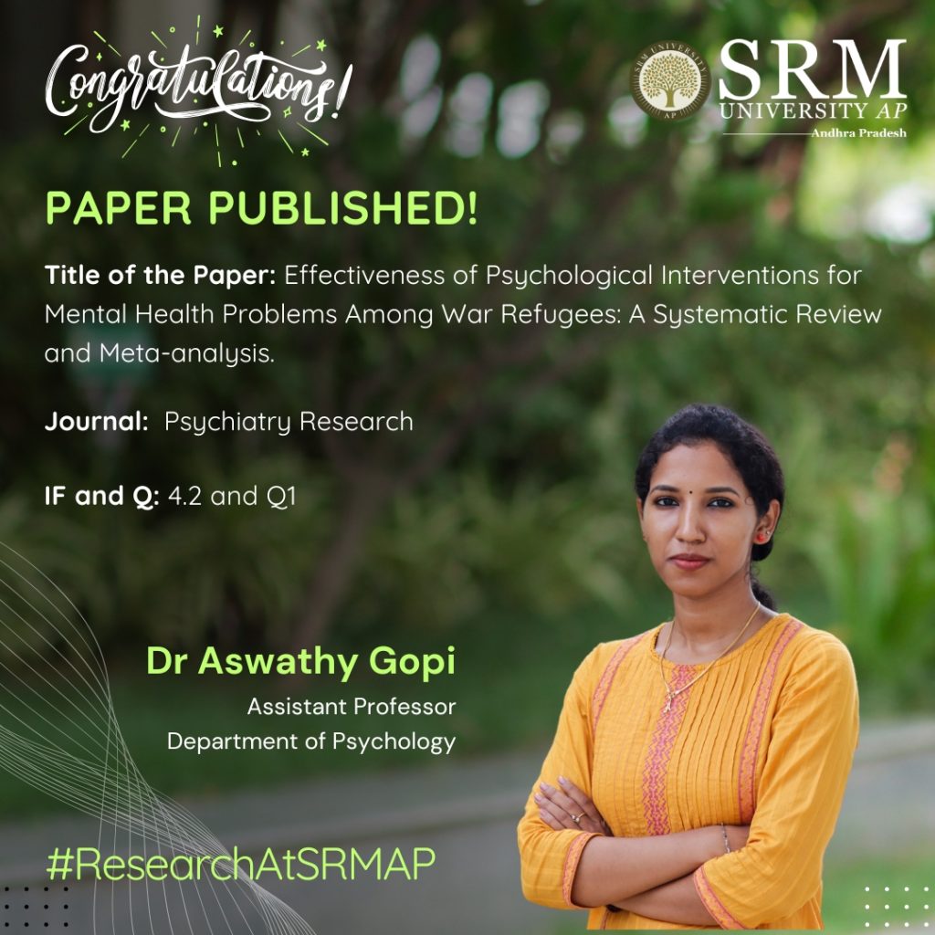 “I object to violence because when it appears to do good, the good is only temporary; the evil it does is permanent.”, this quote by Mahatma Gandhi serves as a stark reality that war leaves individuals grappling in severe trauma. Dr Aswathy Gopi, an Assistant Professor at the Department of Psychology, explores this impact in her research paper titled “Effectiveness of Psychological Interventions for Mental Health Problems Among War Refugees: A Systematic Review and Meta-Analysis.” Her paper sheds light on the profound effects of war on the mental health of refugees, emphasising the need for tailored approaches to support their psychological well-being.