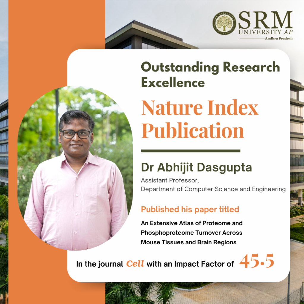 Dr Abhijit Dasgupta, Assistant Professor from the Department of Computer Science and Engineering, has published his breakthrough research article titled “Turnover Atlas of Proteome and Phosphoproteome Across Mouse Tissues and Brain Regions” in the nature index journal Cell having an impact factor of 45.5.