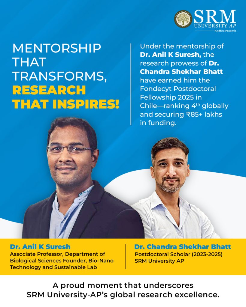 Dr Anil K Suresh’s remarkable journey and the ripple effect of his visionary leadership inspire all researchers at the SRM AP community. Dr Chandra S Bhatt’s success in securing the prestigious fellowship is a testament to the high-quality research conducted at SRM AP.