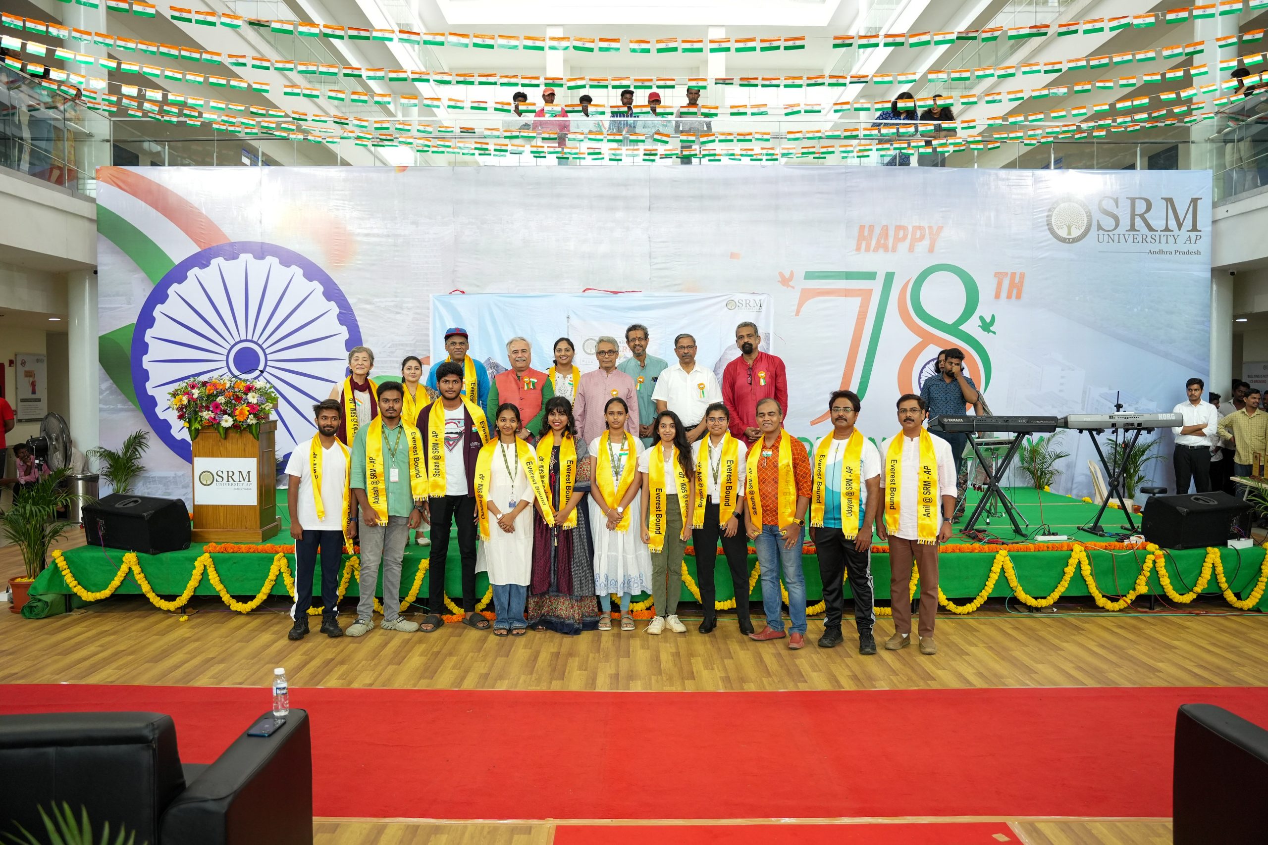 SRM University-AP signalled the commencement of the 78th Independence Day festivities filled with pride and patriotic magnificence by hoisting the national flag. Vice Chancellor Prof. Manoj K Arora did the honours by highlighting the progress made by our country in the past 77 years and the leaps that SRM University-AP has taken since its origin. He emphasised the tremendous hard work everyone has done to achieve this scale of independence and success for the country and the society.