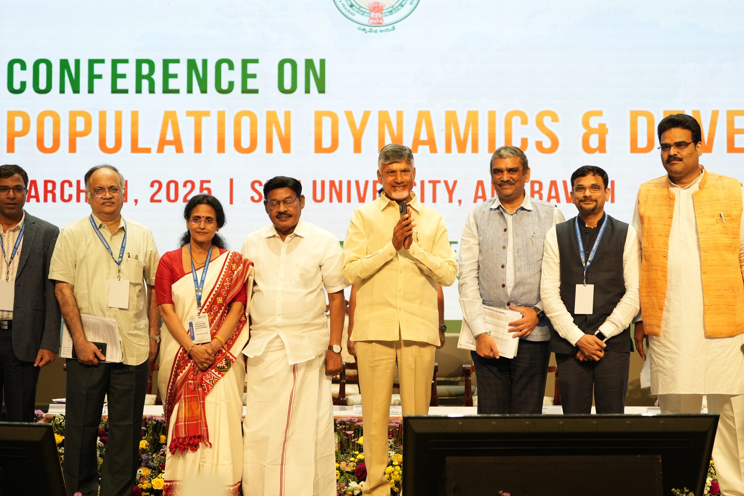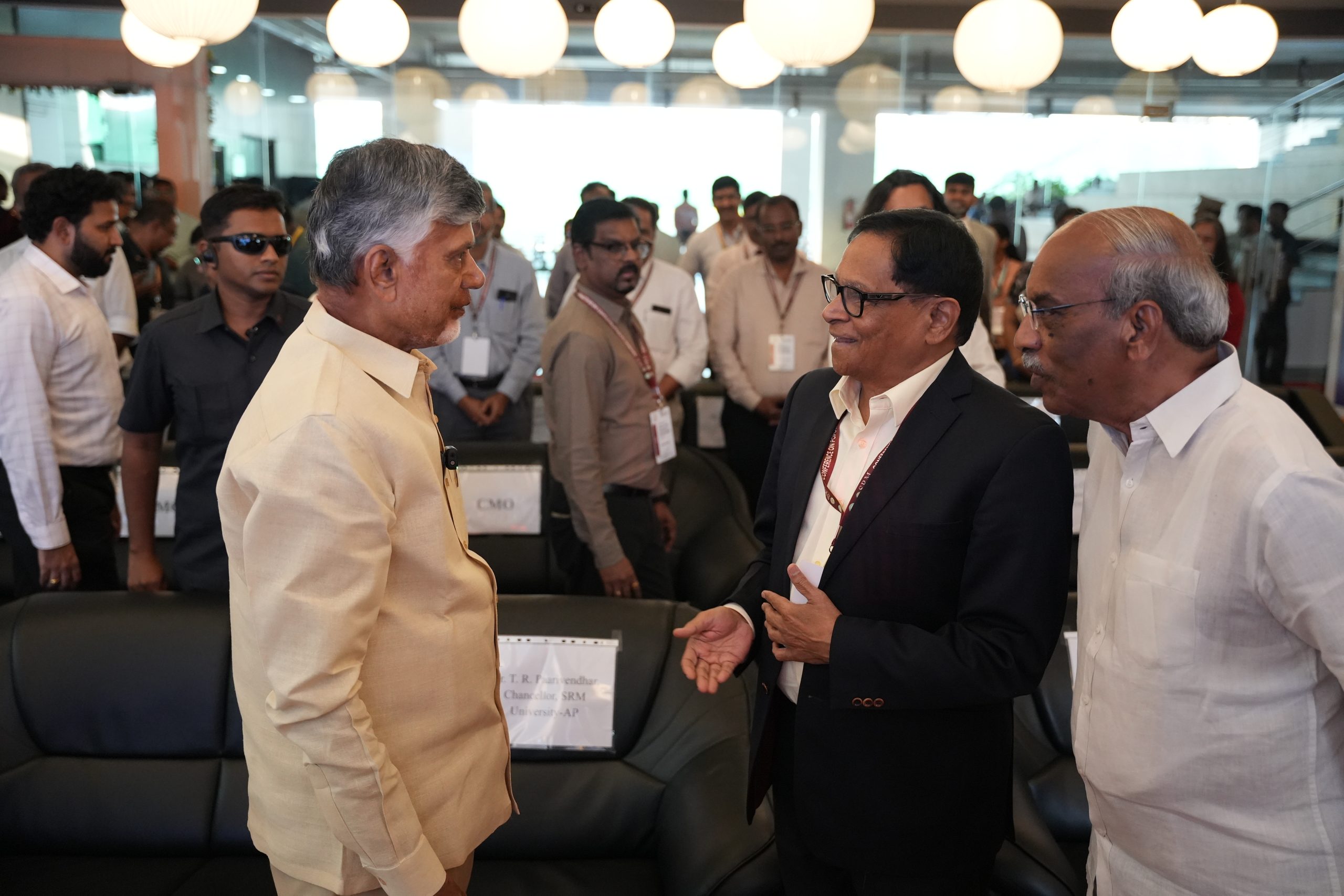 SRM University-AP had the privilege of welcoming the Honourable Chief Minister of Andhra Pradesh, Shri Nara Chandrababu Naidu on campus on March 11, 2025. The Honourable CM, who visited the campus as the chief guest of the Conference of Population Dynamics and Development, organised under the auspices of the Planning Department, Government of Andhra Pradesh, held an exclusive interaction with the leadership and management of SRM University-AP on infrastructure planning, development and execution of the upcoming projects.