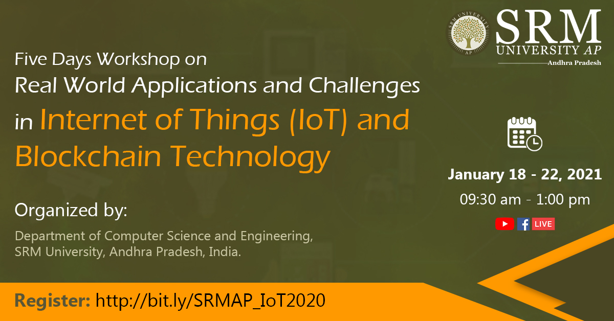 Department of Computer Science and Engineering is conducting a five-day workshop on the real-world applications in the Internet of things and Blockchain Technology from January 18-22, 2021. The workshop has been organised in association with APPLY VOLT. Eminent speakers from reputed institutes such as the University of California, San Diego, USA; IIT Kharagpur, NIT-Warangal, MNIT Jaipur will be sharing their valuable opinions and insights in the workshop. The registration for the workshop ends on January 16, 2021.