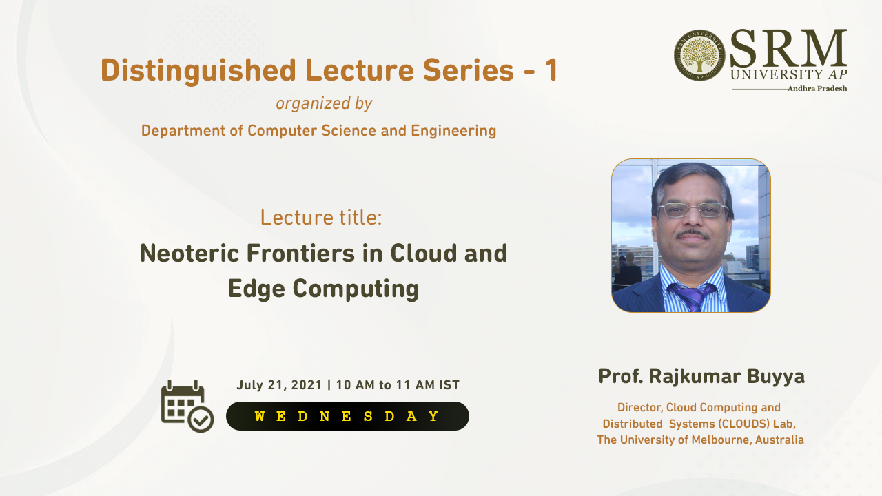 The Department of Computer Science and Engineering (CSE) at SRM University-AP is organising the first session of the Distinguished Lecture Series on the topic “Neoteric Frontiers in Cloud and Edge Computing” on July 21, 2021, Wednesday at 10.00 am. Prof Rajkumar Buyya, Director at Cloud Computing and Distributed Systems (CLOUDS) Lab, University of Melbourne, Australia will be the keynote speaker of this session on emerging fields of Computer Science.