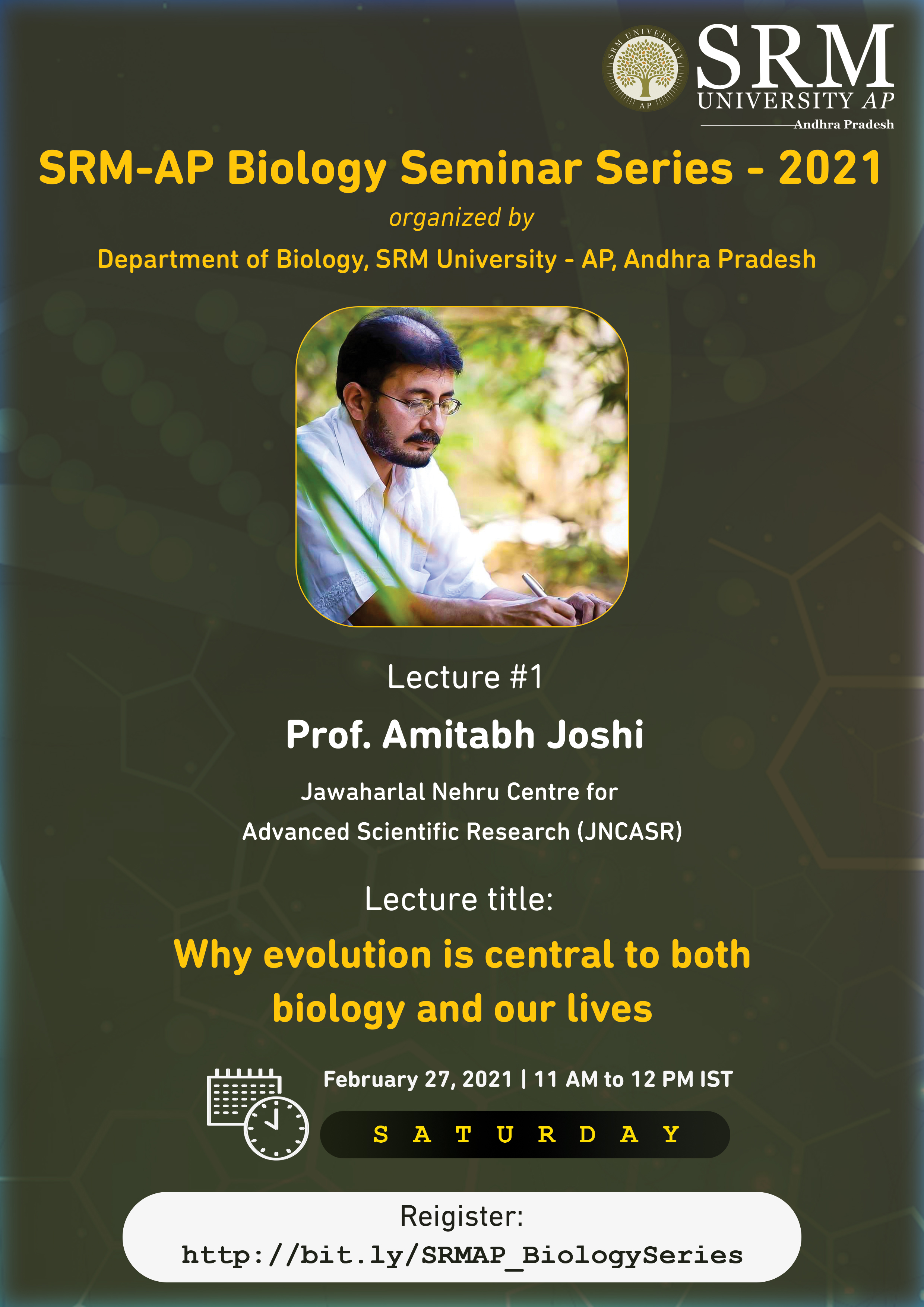 Prof Amitabh Joshi to initiate the SRM-AP Biology Seminar Series – 2021