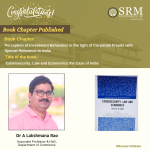 In a significant contribution to the academic discourse on corporate frauds and investment behaviour, Dr A Lakshmana Rao, Head of the Department and Associate Professor in the Department of Commerce, has published an insightful book chapter titled “Perception of Investment Behaviour in the Light of Corporate Frauds with Special Reference to India,” the chapter is a part of the book “Cybersecurity, Law and Economics: The Case of India,” published by Routledge, a prestigious Taylor and Francis Group.