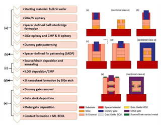 Scaling gate lengths deep is most reliable with tree-shaped Nanosheet FETS (NSFET). This paper uses TCAD simulations to study the 12nm gate length (LG) n-type Tree-shaped NSFET with a stack of high-k dielectric (HfO2) and (SiO2) spacers. The Tree-shaped NFET device features high on-current (ION) and low off-current (IOFF) with T(NS) = 5 nm, W(NS) = 25 nm, WIB=5nm, and HIB = 25 nm. Comparison of single- and dual-k spacer 3D devices and DC properties are shown. Because fringing fields with spacer dielectric prolong the effective gate length, the dual-k device has the highest ION / IOFF ratio, 109, compared to 107. This research also examines where work function, inter bridge height, breadth, gate lengths, temperature, and analog/RF and DC metrics affect the device. The suggested device has good electrical properties at 12 nm LG, with DIBL = 23 mV/V, SS = 62 mV/dec, and switching ratio (ION / IOFF) = 109. The device’s performance proves Moore’s law applies to lower technological nodes, enabling scalability.