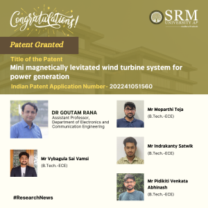 Dr Rana, along with his dedicated team of B. Tech ECE students—Mr Vybagula Sai Vamsi, Mr Moparthi Teja, Mr Indrakanty Satwik, and Mr Pidikiti Venkata Abhinash have developed a system that promises to revolutionise how we harness wind energy. The turbine’s miniaturised and magnetically levitated design allows for efficient power generation with minimal mechanical friction, leading to a longer lifespan and reduced maintenance costs.