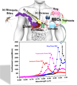 4. Malaria Detection: The sensor can also detect malaria by analysing infected red blood cells. Different stages of malaria infection (Ring, Trophozoite, and Schizont) cause different shifts in the wavelength, which the sensor can measure. The sensor’s sensitivity varies slightly with each stage but is consistently high.