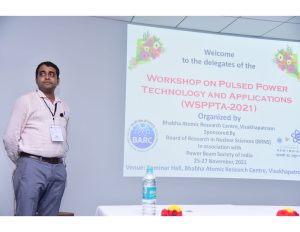 Dr Somesh Vinayak Tewari delivered an invited talk on “High Power Closing Switches” on November 25, 2021, during the Workshop on Pulse Power Technology and Applications (WSPPTA-2021) held from November 25, 2021, to November 27, 2021, at Bhabha Atomic Research Centre (BARC) Facility, Visakhapatnam, sponsored by Board of Research in Nuclear Sciences (BRNS), Department of Atomic Energy, Government of India in association with Power Beam Society of India.