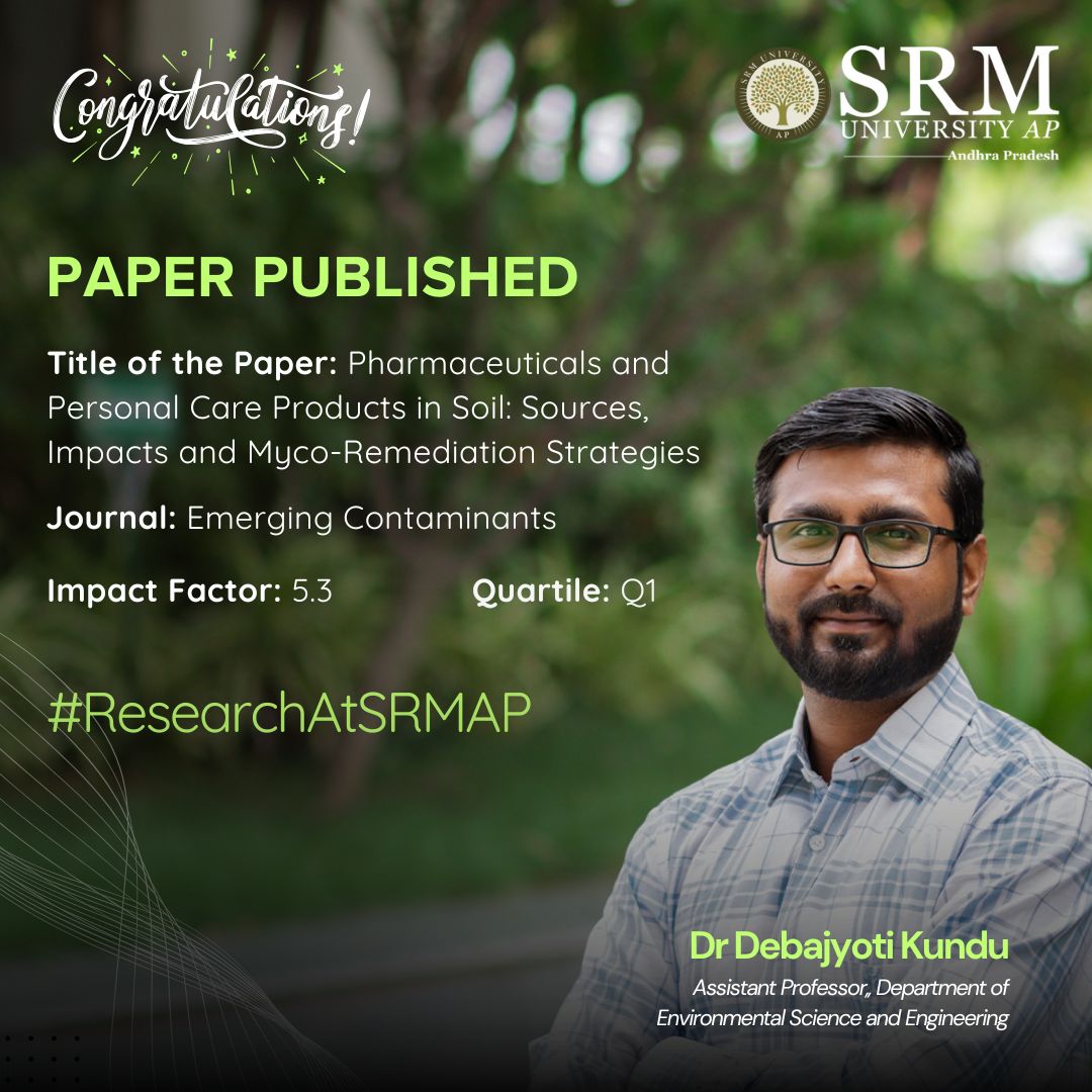 Dr Debajyoti Kundu, Assistant Professor at the Department of Environmental Science and Engineering in his research paper, Pharmaceuticals and Personal Care Products in Soil: Sources, Impacts and Myco-remediation Strategies, speaks of the innovative solutions to tackle contamination of soil. Dr Kundu’s research focuses on leveraging natural processes of fungi to promote sustainable environmental management.