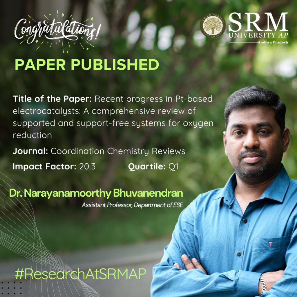 Dr Narayanamoorthy Bhuvanendran, Assistant Professor from the Department of Environmental Science and Engineering, works extensively in this field and has recently reviewed the advancements in Pt-based electrocatalysts that can reduce the Oxygen reduction rate (ORR) in Hydrogen fuel cells in his research paper. The paper titled “Recent progress in Pt-based electrocatalysts: A comprehensive review of supported and support-free systems for oxygen reduction” was published in the Q1 journal Coordination Chemistry Reviews with an impact factor of 20.8.