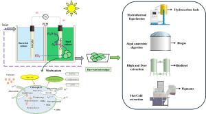The chapter explores the integration of microalgae with microbial fuel cells (MFCs) for simultaneous wastewater treatment and energy generation. It delves into the mechanisms of microalgae-based MFCs, focusing on electricity generation, carbon capture, and the production of value-added bioproducts. The work highlights this technology’s potential for addressing water pollution and resource depletion while advancing sustainable energy solutions.