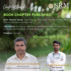 In an era where sustainable energy and environmental conservation are paramount, integration of Microalgae with Microbial Fuel Cells for Wastewater Treatment and Energy Generation emerges as a groundbreaking contribution to biotechnology. The book chapter, “Application of Microalgae-MFC to Mitigate Water Pollution and Resource Recovery” authored by Post-doctoral Research Scholar, Dr Ricky Rajamanickam under the guidance of Associate Professor and Head of the Department of Environmental Science and Engineering, Dr Rangabhashiyam Selvasembian explores the revolutionary potential of microalgae-driven microbial fuel cells (MFCs) in tackling wastewater pollution while generating renewable energy. This work—featured in the book titled, Emerging Trends in Microbial Electrochemical Technologies for Sustainable Mitigation of Water Resources Contamination brings together leading experts offering invaluable insights for scientists, engineers, and policymakers striving for a cleaner and greener future.