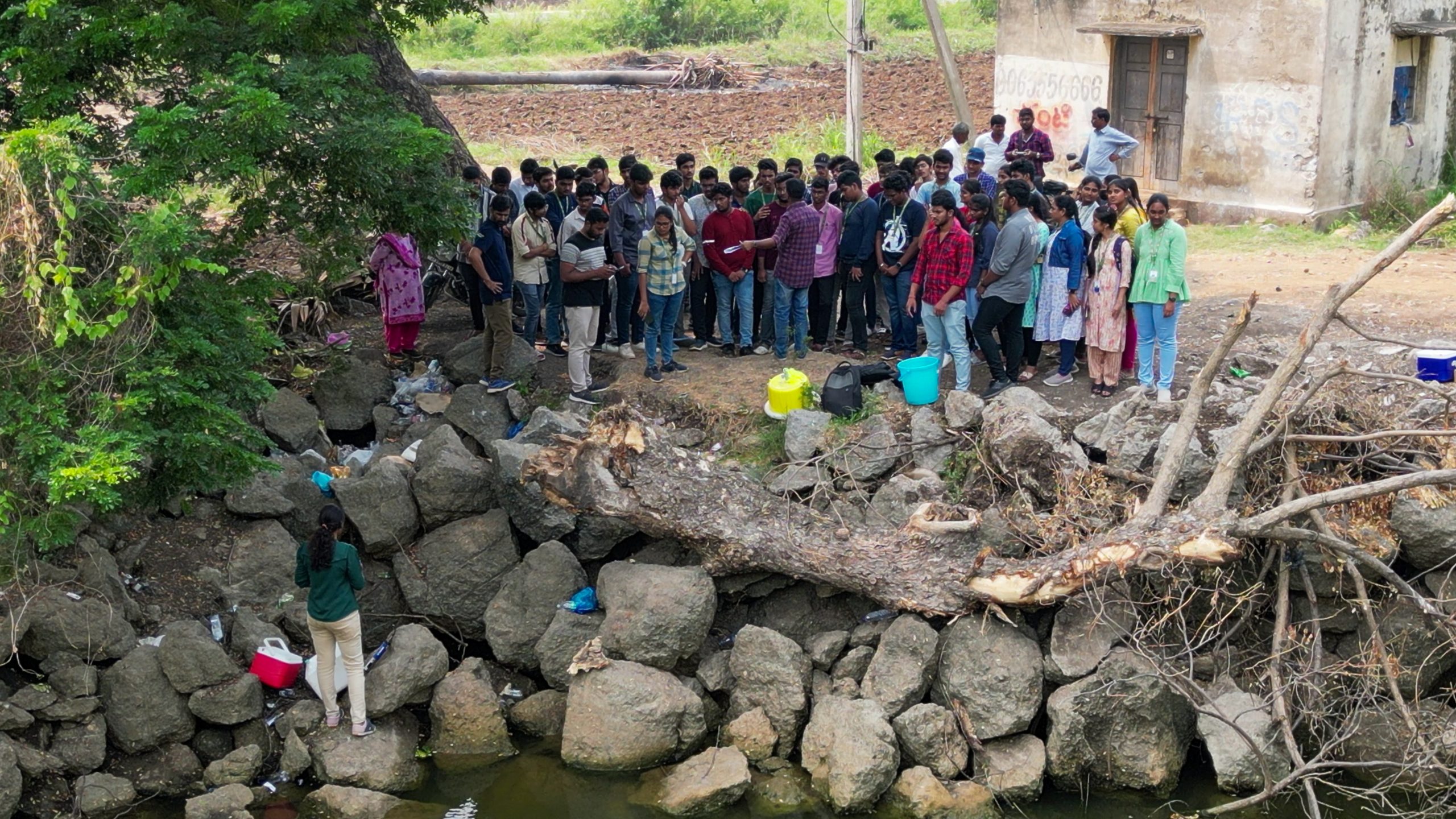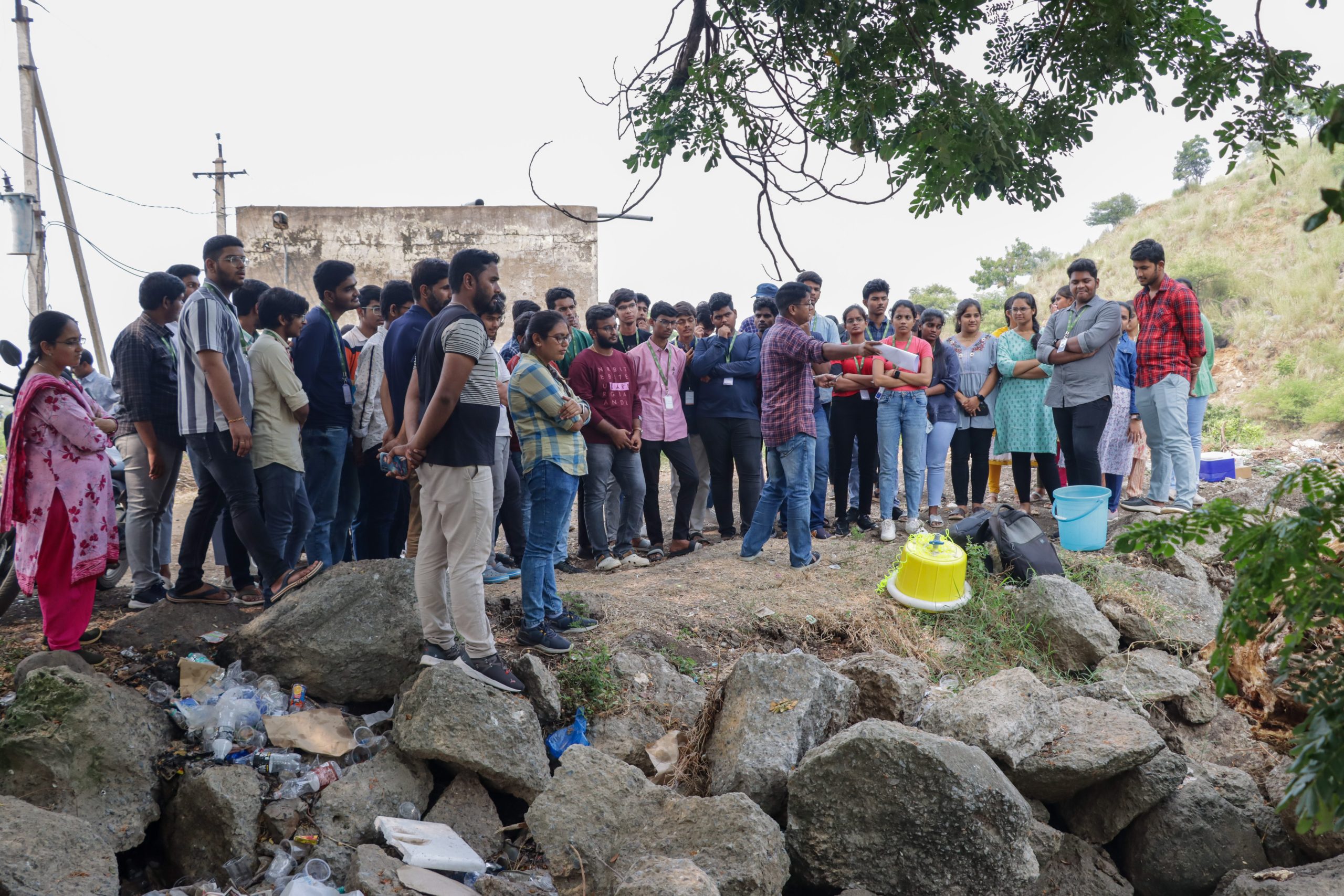The Department of Environmental Science and Engineering organised a field visit for first-year odd semester students as a part of their Environmental Science course (VAC-101) from October 16-20, 2023 around the vicinity of SRM University-AP campus. The students were made aware of the surrounding land-uses, their biodiversity, impacts and importance to the environment. Observations were made on different threats like pollution, plant invasion, fertilizer run-off, etc. and the students were explained what can be done as an individual and as a community to protect our resources. Practical know-hows on vegetation and water sampling were also demonstrated by different faculty members. The students returned with a heightened sense of stewardship towards environmental protection.