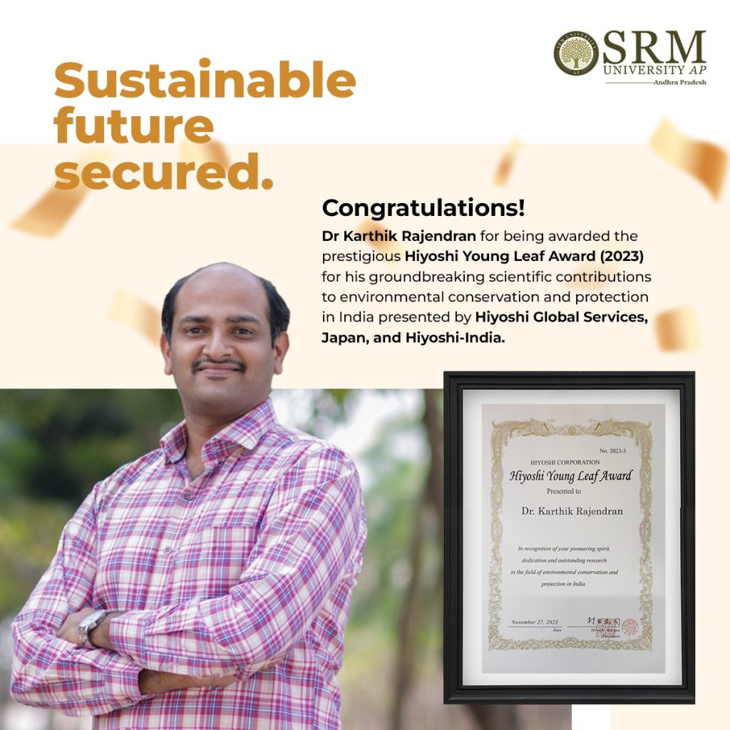 A proud moment for SRM University-AP as Dr Karthik Rajendran, Associate Professor in the Department of Environmental Science and Engineering, receives the prestigious Hiyoshi Young Leaf Award.