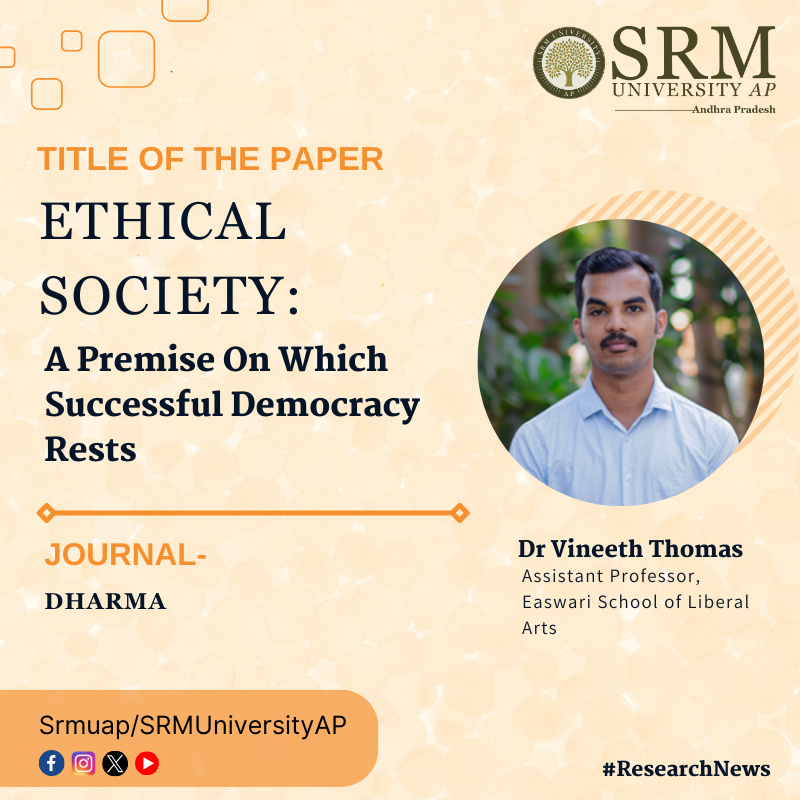 Dr Vineeth Thomas, Assistant Professor at the Department of Liberal Arts, in his research paper titled “Ethical Society: A Premise On Which Successful Democracy Rests”, delves into these complexities of democratic regression that threaten to shake the foundations of our political system.