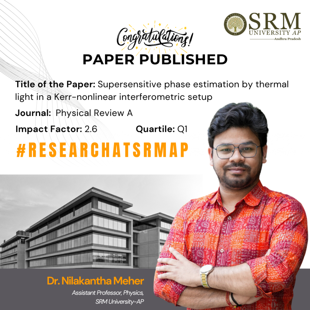 Dr Nilkantha Meher, an Assistant Professor in the Department of Physics at SRM University-AP, has significantly contributed to science with his research paper on using thermal light to detect objects with unmatched precision. This phenomenal work that featured in the journal Physical Review A will positively contribute to the fields of sensing, gravitational wave detection, and phase microscopy.