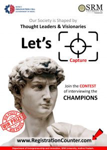 The event will start with the welcome address of Prof V S Rao, Vice-Chancellor, SRM University-AP, followed by talk sessions of Dr Prakash Yadav, Head Innovation, Design and Entrepreneurship Academy (IDEA) and Vice President SRM TBI and Mr Udayan Bakshi, CEO SRM TBI and Associate Director-Entrepreneurship.