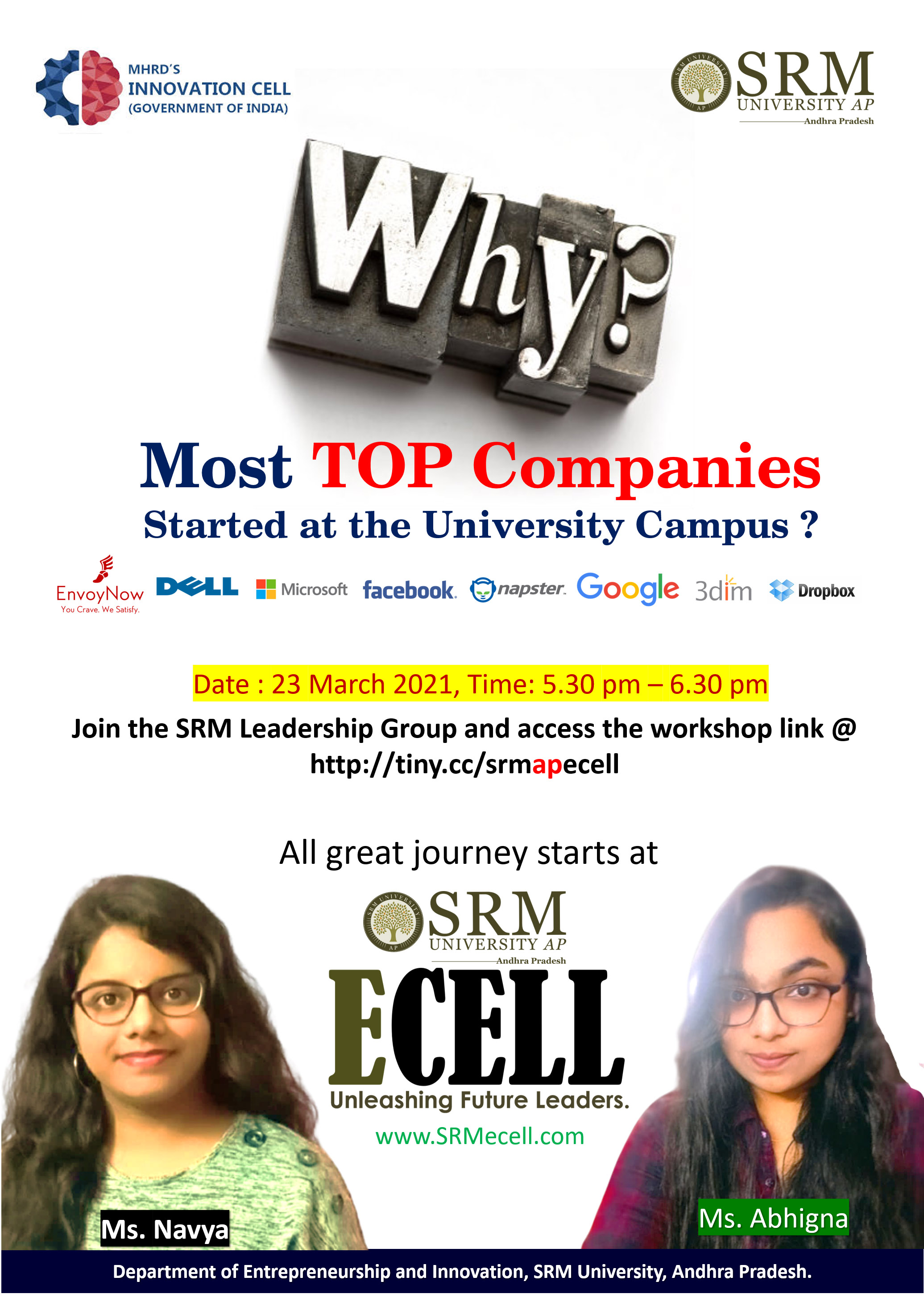 Join the leadership community and be a part of our dynamic e-cell at www.tiny.cc/srmapecell