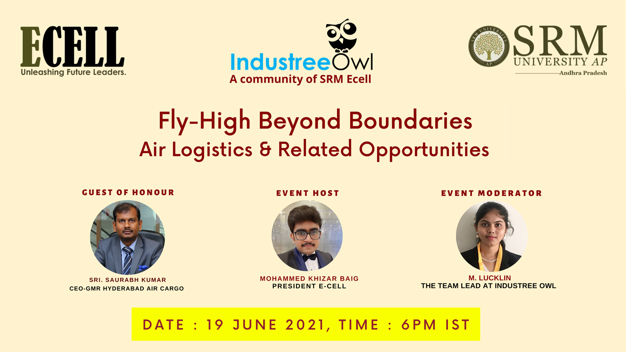 Industree Owl, a community of E-Cell and part of the Department of Innovation, Design and Entrepreneurship Academy (IDEA), SRM University-AP, has come forth to organise a motivating lecture on “Fly-High Beyond Boundaries – Air Logistics and Related Opportunities” with industry-expert, Sri Saurabh Kumar, CEO of GMR Hyderabad Air Cargo on June 19, 2021, at 6 pm. In the session, Sri Saurabh Kumar will enlighten and engage with the participants with his extensive knowledge and expertise in the domain. The objective behind organising such an event is to direct the students to the outer world through exploration, facilitating the participation in events conducted by various organizations, governments, or agencies. It will further benefit them with the internal training and mentoring needed to make them ‘competition ready’.