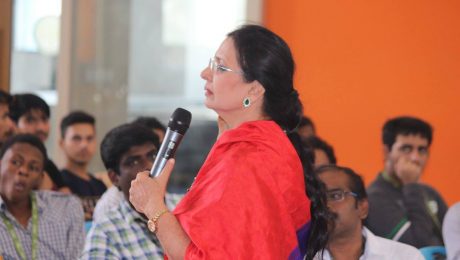 On the morning of November 21, 2017, a lecture was arranged in the atrium of SRM-AP with Ms. Hema Gopal, Vice-President of Tata Consultancy Services Limited. In her opening remarks she emphasized the importance and growing influence of IT sector in our daily lives. She educated the student community on various ways of making a bright career in IT industry, keeping in view its widespread product applications, in both personal and professional fronts. During her lecture, she presented some of the interesting facts and figures related to IT sector. She explained, how students can get through in IT sectors and contribute to various fields including automobile, software, tele-communication, transportation, medical, defense, aerospace, design, education, banking and insurance etc. She later informed students that irrespective of their specialization in undergraduate education they can very well join IT industries after completion of course and obtain expertise in interested IT field over a period of time, leading to an excellent career. She also emphasized on the social development as well the national development that we can gain from IT sectors. Overall, students found her speech as quite informative, interesting and knowledgeable. The lecture was followed by question-answer session at the end.