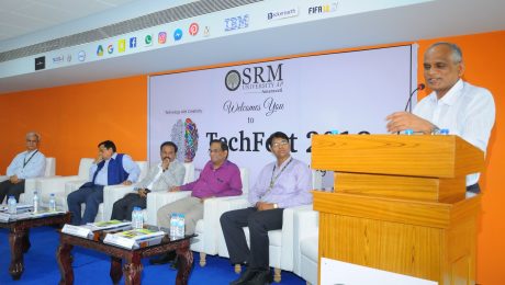 The first Tech Fest of SRM University – Andhra Pradesh, was inaugurated on 28th March 2018 by Dr. V.K Saraswat (Member – NITI Aayog), Dr. M. Nageswara Rao (Associated Director – ISRO Satellite Center), Dr. P. Sathyanarayanan (President – SRM University), Dr. D. Narayana Rao (Pro VC – SRM University – Andhra Pradesh) and Dr. D. Gunasekaran (Registrar – SRM University – Andhra Pradesh).