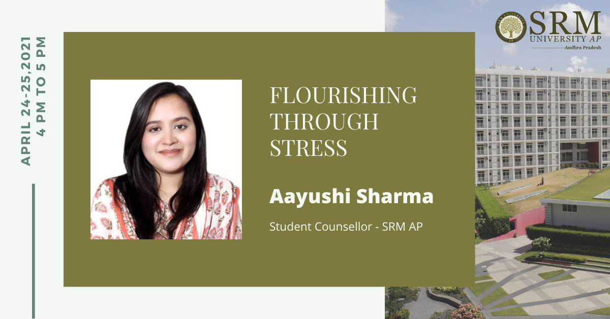 Amid Covid-19, when we see high rates of mental duress and a substantial rise in the cases struggling with health concerns, an initiative in the form of discussion is highly obliging. The Department of Student Affairs of the SRM University-AP came forward with an imperative step to hold a two-day webinar on “Flourishing through Stress” with Aayushi Sharma, Student Counsellor, SRM University-AP on April 24 and 25, 2021, from 4 pm to 5 pm.