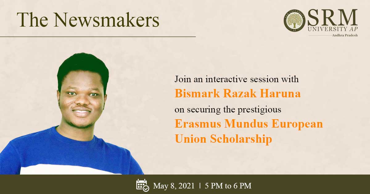The exalting sessions on “The Newsmakers” leave no stone unturned to inspire students with motivating stories of their peers and known personalities. The Department of Student Affairs presents Bismark Razak Haruna in this week’s session. Bismark, a B. Tech Final Year Student at the Department of Mechanical Engineering, is deemed to be bestowed on the highly prestigious Erasmus Mundus scholarship. The globally acclaimed European Union-funded scholarship will help Bismark pursue the joint master’s degree programme in Decentralised Smart Energy Systems (DENSYS) in renowned universities of Europe.