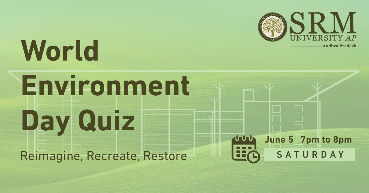 This year’s theme: ‘Reimagine.Recreate.Restore.’ marks the beginning of the United Nations Decade on Ecosystem Restoration. The Department of Student Affairs, SRM University-AP is organizing a Quiz Programme for the students on June 5, 2021, at 7:00 pm to ensure commitment to the earth’s reviving mission, as a green and sustainable university.