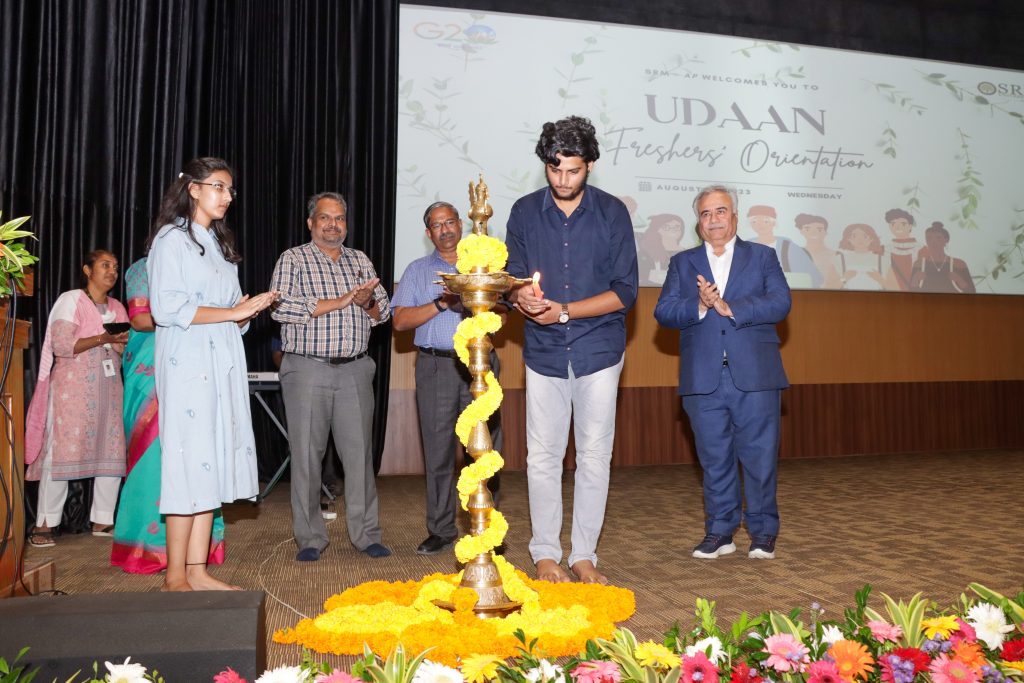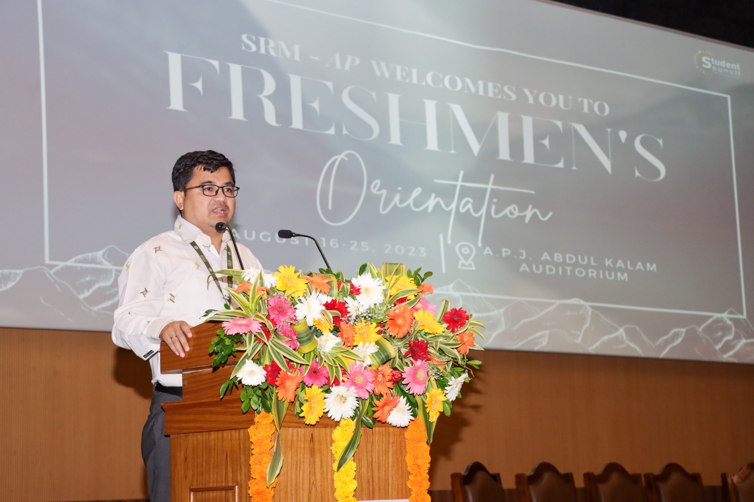 “The word ‘Aloha’ embodies compassion and kindness. We welcome you to your second home, SRM University-AP where we will nurture you to be holistic individuals throughout your academic journey” stated Prof. Arora in his inaugural address. The Director of Student Affairs welcomed the freshers into the academic and social community of the university. “SRM University-AP is a place for creating friendships, exploring your potential and being the best version of yourself!” Mr Nigam addressed the freshers.
