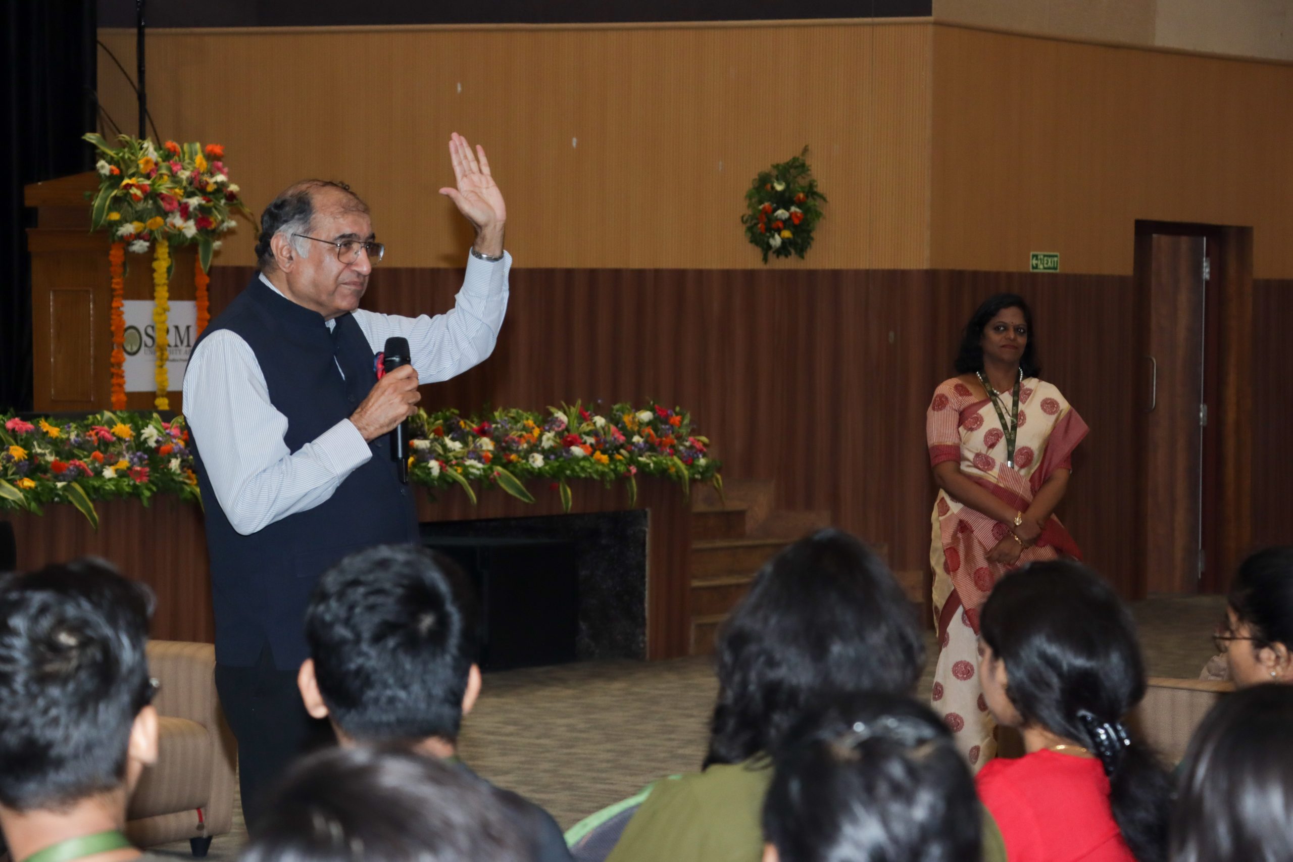 In his welcome speech, Prof Manoj K Arora, Vice-chancellor of SRM University- AP, requested the fellow and associate members of IASc to encourage and instil their unwavering admiration and inclination for research and development into the faculty of educational institutions. He also expressed his concerns about how science and technology are instructed to students in classrooms; considering the enthusiasm and genuine yearning for innovations; it should evoke among students to retain the potential for constructive explorations in ages to come.