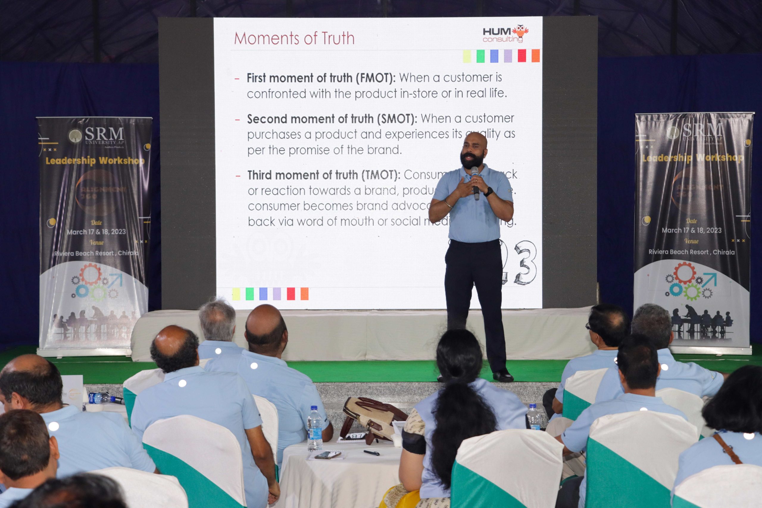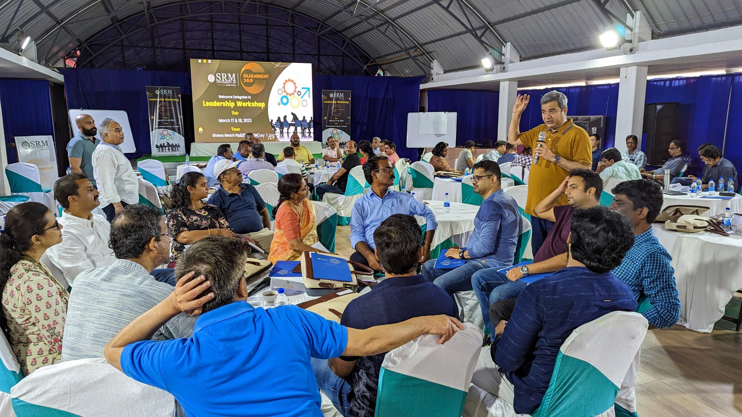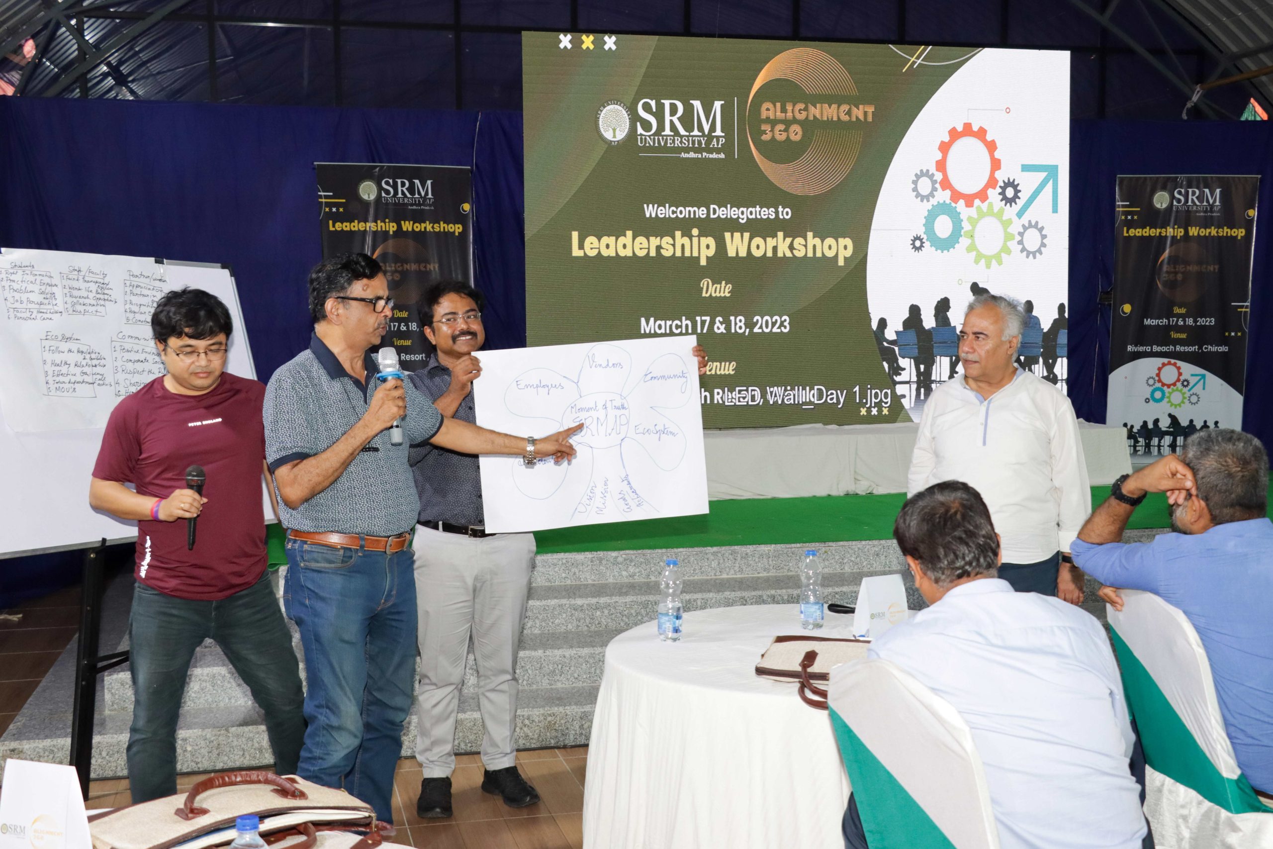 SRM University-AP conducted the first-ever three-day leadership workshop with the theme Alignment 360 to help individuals at the university align their values, goals, and behaviours holistically. 57 leadership team members from academic, non-academic, top management and the President’s office participated in the event held from March 17 to 19, 2023, at Riviera Beach Resort, Chirala. The workshop aimed to enable individuals and teams to clarify their core values and goals and develop an action plan to align their behaviour and decision-making with these values and goals.