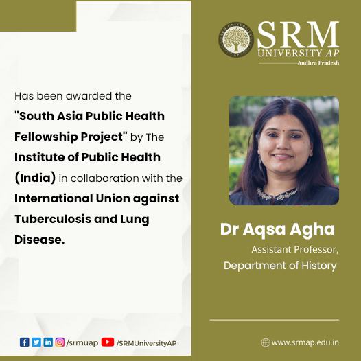 Dr Aqsa Agha, Assistant Professor, the Department of History, has been awarded the South Asia Public Health Fellowship Project by The Institute of Public Health (India) in collaboration with the International Union against Tuberculosis and Lung Disease. As the South Asia Public Health Fellow-India, Dr Agha is expected to conduct research on the ethics of the tobacco industry and submit the report over a period of 8 months, i.e. from December 01, 2021, to July 31, 2022. She has been granted an amount of USD 6660 to carry out the project.